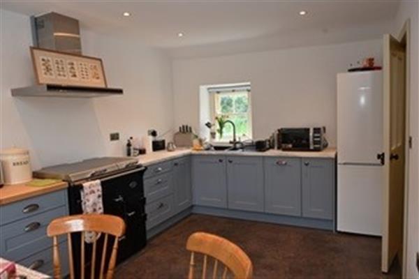 The kitchen is well equipped with an Everhot (electric range cooker) and a multi-function mircrowave, toaster, a dishwasher, fridge freezer, boiling water tap rather than a kettle and has a dining area that can seat six.
