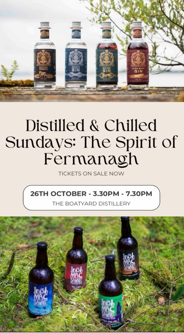 A premium Sunday session celebrating Fermanagh’s finest gin and beer, paired with local artisan food and live traditional Irish music from talented local musicians, The Maguire Family featuring Ronan Warnock (4:30–6:30pm). Guests enjoy a curated tasting experience, storytelling from each producer, and a relaxed, intimate atmosphere celebrating the local culture.