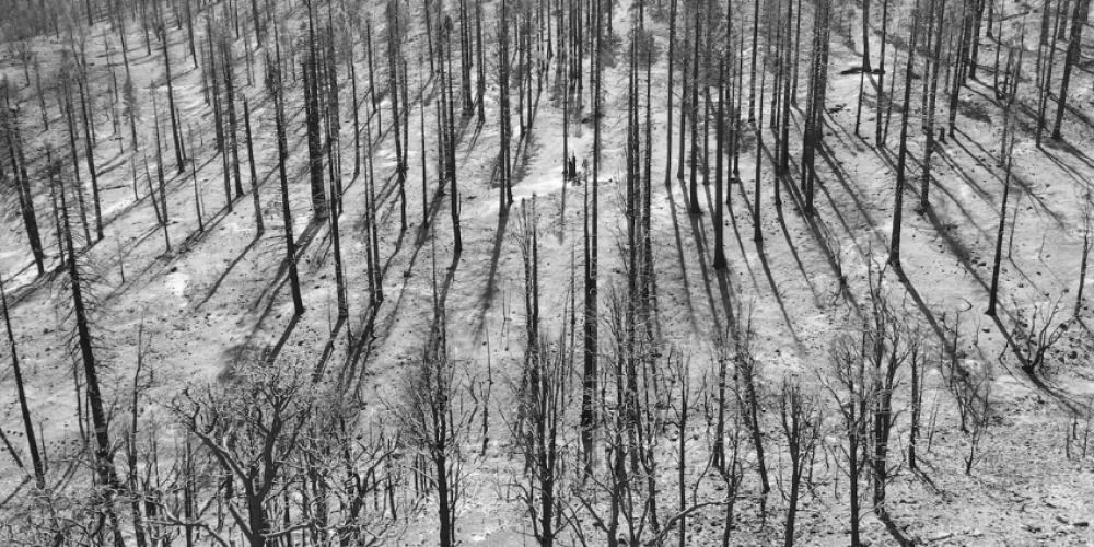 Presented in black and white devoid of humans and animals, a conscious attempt to present familiar imagery in a way that is different from daily news reporting. The pace and rhythm of the work is calibrated towards slowness.