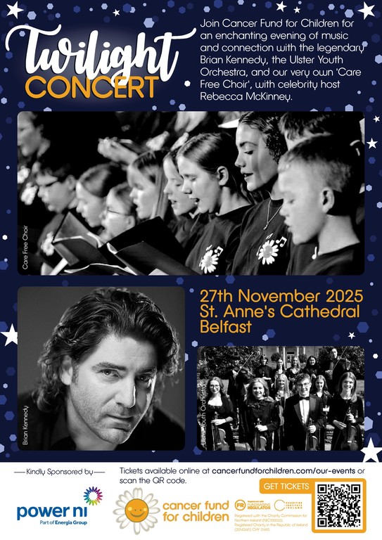 Nestled in the flickering glow of candlelight, you will be treated to a night of captivating musical talent from the legendary, and Belfast's own, Brian Kennedy, a string quartet from the incredible Ulster Youth Orchestra and our wonderful Cancer Fund for Children 'Care Free Choir', with celebrity host Rebecca McKinney.