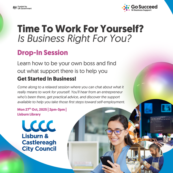 This online Go Succeed Drop-In Session is delivered in partnership with Lisburn and Castlereagh City Council area.