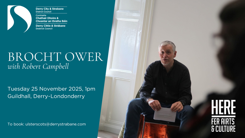Join poet and author Robert Campbell on a fascinating personal journey that seeks to understand the complex history and evolution of the Ulster Scots language, and answer many of the hard questions. This talk weaves together a personal story and epic history, exploring deep family connections, serendipitous personal interactions, and little-known historical facts. The speaker will trace the institutional forces that led to the rapid decline of Ulster-Scots, its partial recovery, and ideas for stability and future growth, along with broaching the serious issue of the ‘Ulster Scots Echt’. This is an essential conversation for anyone interested in language, heritage, and the future of identity in this part of the world. The session is accessible to everyone, is delivered in a playful and lighthearted manner, and is interactive.