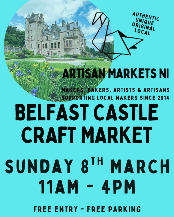 Quality, locally-produced Food, Art, Craft! Set in the beautiful Belfast Castle, with its breathtaking views over Belfast, you can browse a fabulous selection of artisan stalls. We'll have deliciously fresh bakes, vegan food, confectionery, original art, jewellery and much more. Free parking, free entry. See you there!