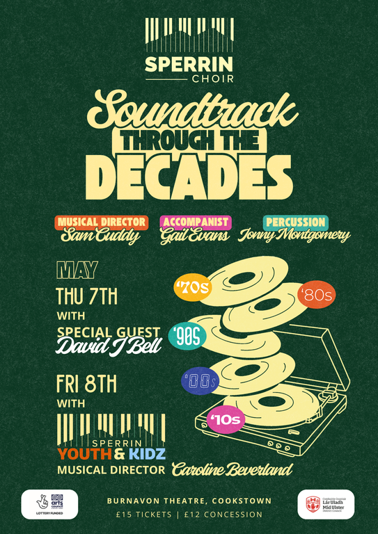 Step into a time machine of music with the Sperrin Choir! From the drama of the 70’s to today’s heartfelt anthems, the choir will take you on a journey where Mamma Mia meets Viva la Vida. Feel the rhythm of the night as we dance through Whitney’s world, chase cars under a sky full of stars, and find that perfect love song. These iconic hits aren’t just sung -they’re reborn in soaring harmonies and vibrant energy. Join The Sperrin Choir for a night where memories and melodies collide. Pop through the decades… like you’ve never heard before!
