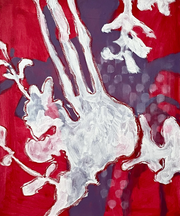 In A Fig for a Kiss Naomi Litvack focuses on organic worlds, reflecting on memory, observation, and the fleeting act of looking - seeking to transform passing impressions through painting. The work explores materiality and process, with paintings that engage as much with the medium of paint itself as with image. Litvack explores the natural world using paint combined with print, collage and drawing to create layered surfaces filled with forms, scribbles, layers and loops.