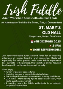 Dec 6 2025 Irish Fiddle Workshop for Adults Dec 6 2025 Old Hall. St. Mary's Chapel Lane Belfast, Belfast